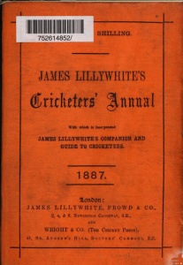S H I L L I N G . 7 5 2 6 1 4 8 5 2 / J A M E SLILLYWHITE'S Cricketers ' Annual Withwhich is incorporated J A M E SL I L L Y W H I T E ' S C O M P A N I O NA N D G U I D ET OC R I C K E T E R S . 1 8 8 7 . L o n d o n: J A M E SL I L L YW H I T E , F R O W D& C O., 2, 4, & 6, NEWINGTONCAUSEWAY, S.E. , A N D W R I G H T& C O. (THE CRICKET PRESS), 41, S T. A N D R E W ' SH I L L, D O C T O R S ' C O M M O N S , E.C.